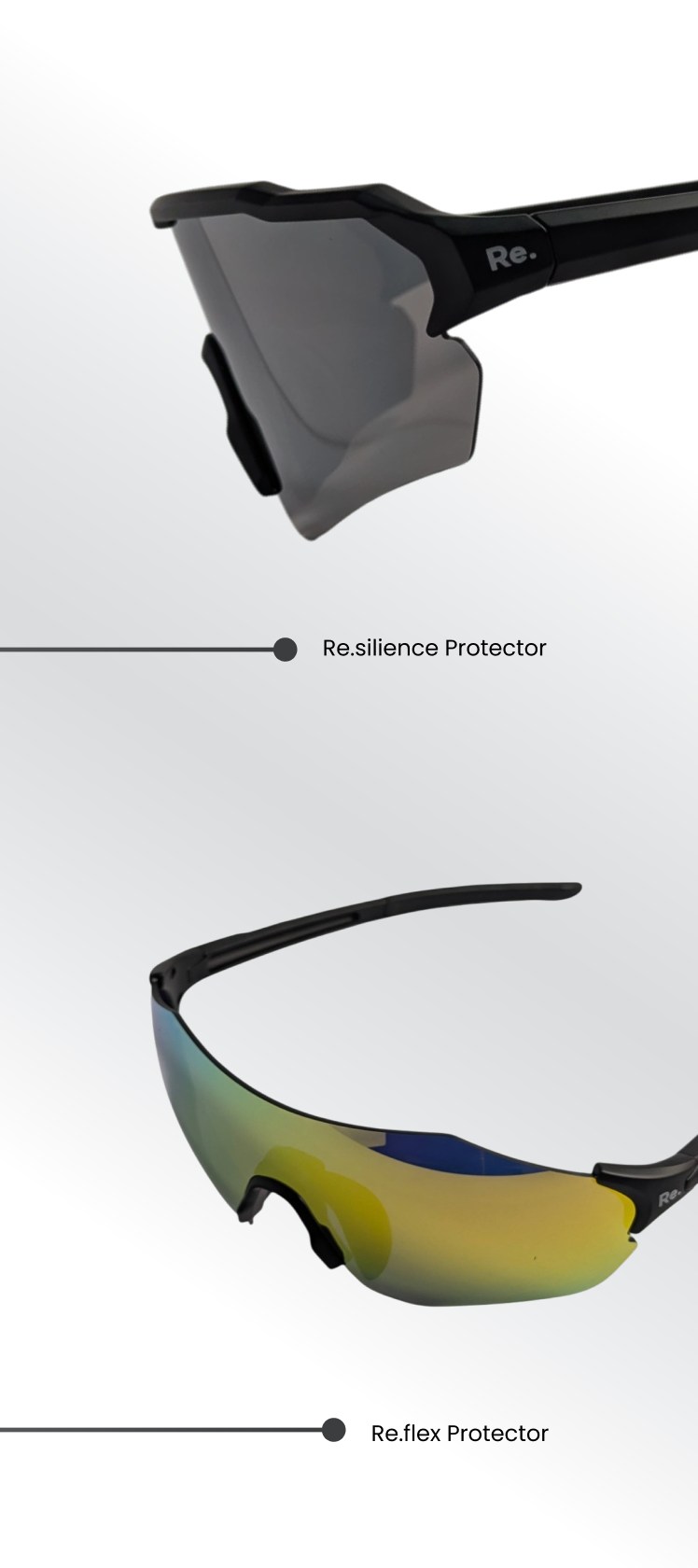 - Protector: Polycarbonate lenses with full revo coating to reduce glare and enhance clarity.